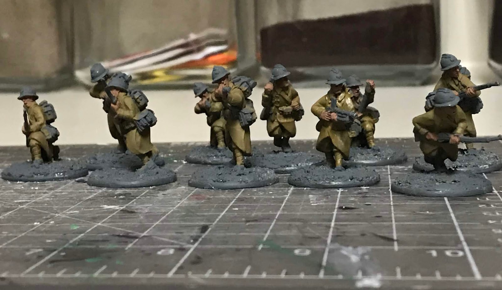 Converting the order of battle, the Germans have a Platoon Leader, a rifle squad (each man armed with a panzerfaust -8 in total), an MMG team, an independent LMG team, and a PAK38 and crew. Lacking a PAK38 model, I used one of my Britains guns for a "close enough" match.